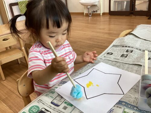 ぶどう組さんは織姫・彦星を、もも組さんは星を作りましたよ❗️