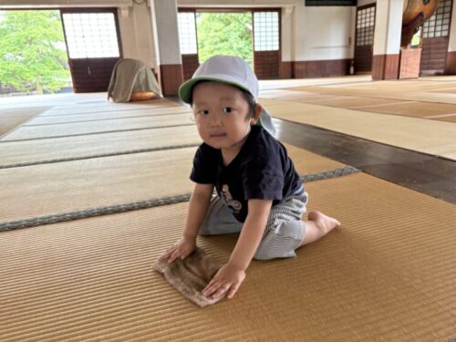 広いお寺の本堂のいろいろなところを拭いてピカピカにしてくれました✨