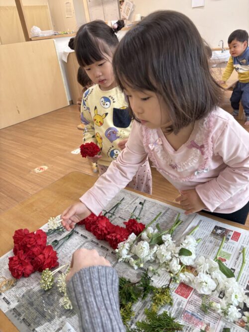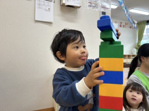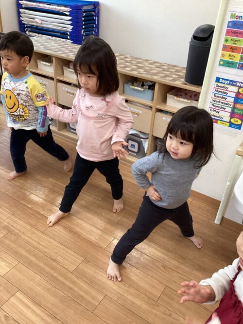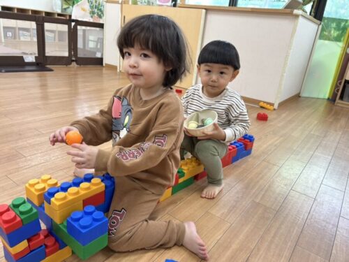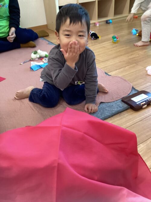 もも組さんはぬいぐるみのお世話をして遊んだり、風呂敷の布でかくれんぼして遊びました☺️
