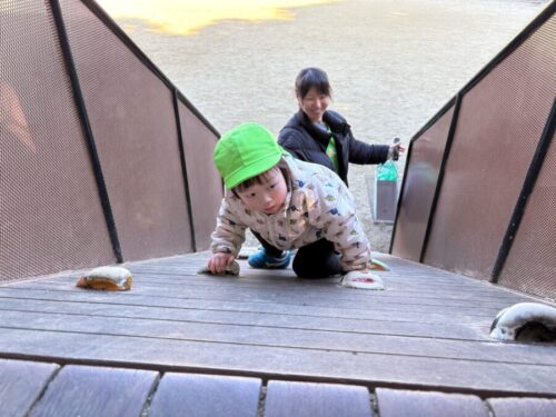 すべり台を繰り返しすべったりして全力で外遊びを楽しむ子どもたちでした😆