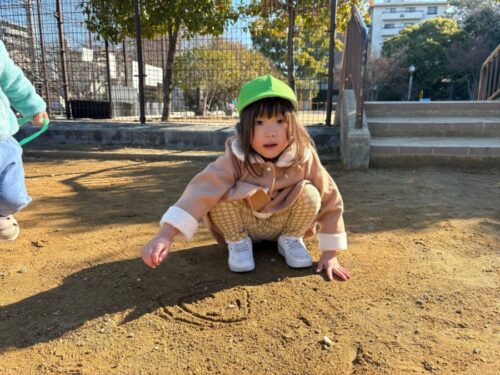 みんな走ることに疲れると地面にお絵描きをして楽しんでいました!