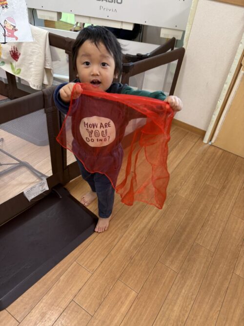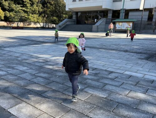 「先生かくれんぼしよ〜」と誘ってきたり、鬼に見つかったら逃げたり、自分たちで1〜10を数えて鬼役をやっていたりと楽しそうな姿がたくさん見られました。