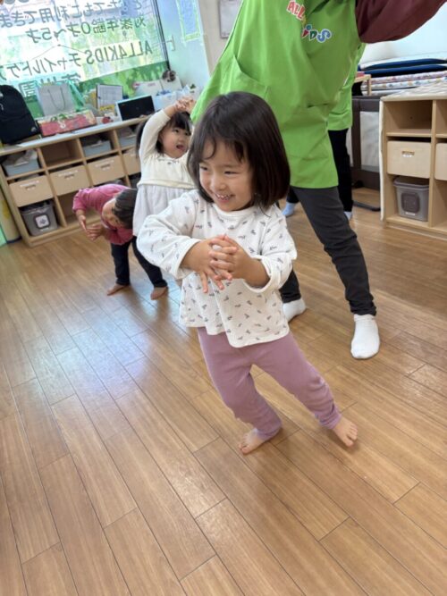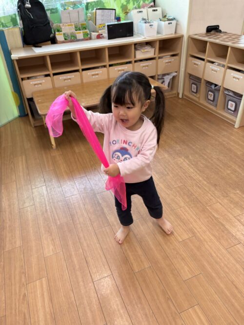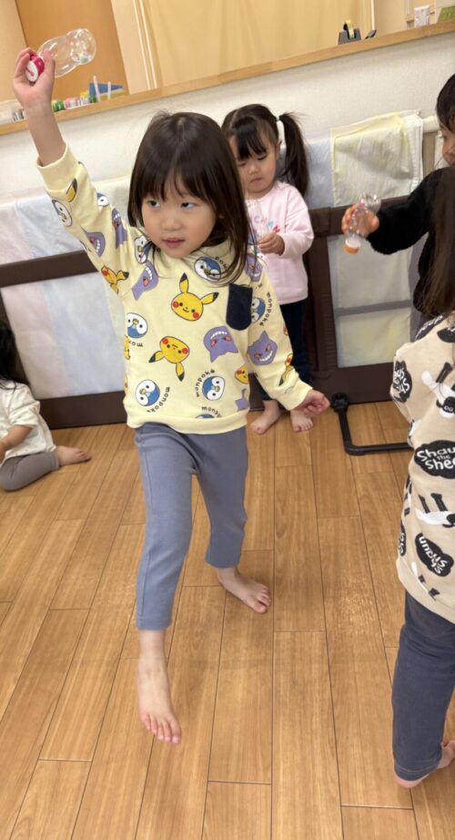 リトミックの先生をよく見て、上手に真似してカラフルな凧が上がっていましたよ✨