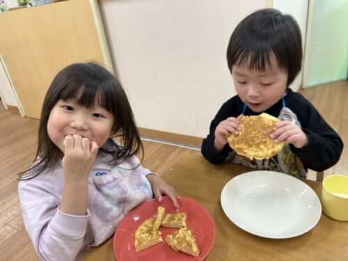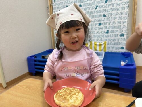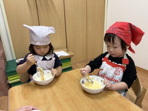 ぶどう組さんはお昼寝から起きてからクッキングをしました!