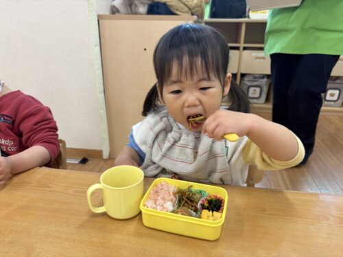 給食をモリモリ食べて今日も「おかわりください!」の声が響いていました😌