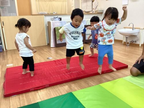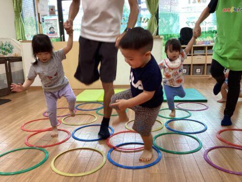 今回はマットやフープを使ってのジャンプを行いましたよ(^^♪