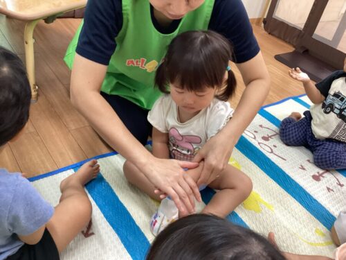 手洗いの歌に合わせてゴシゴシ練習しましたよ🥰