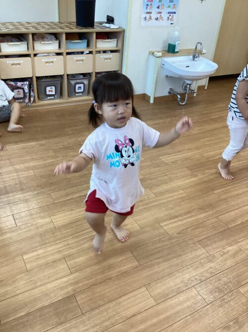 先生の真似をして腕を伸ばしたり、手や足をブラブラしたりする姿がかわいいです💕