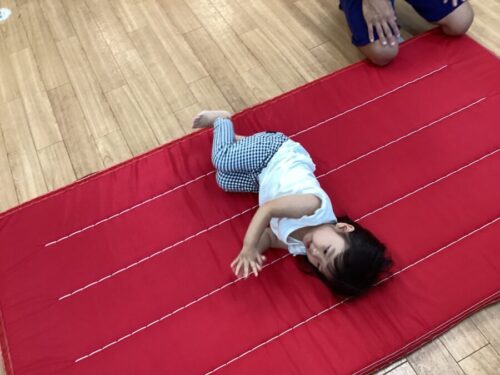 自分の力でマットから落ちないように上手に転がっていましたよ✨