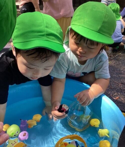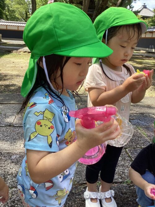 お天気も良かったので、予定通り戸外での水遊びを行いましたよ😆