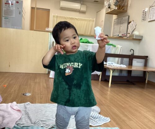 あっという間に夏が終わり、水遊びもできなくなるということで今日もお部屋で水遊びをしましたよ!