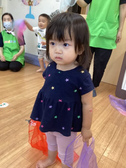 音楽に合わせてパチパチ手をたたいたり、揺れたり、、、と