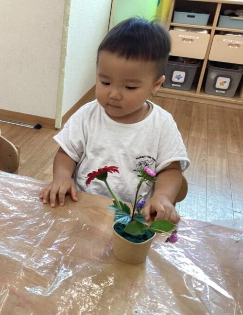 茎が折れやすく難しかったですが、みんな頑張って自分で挿していました✨