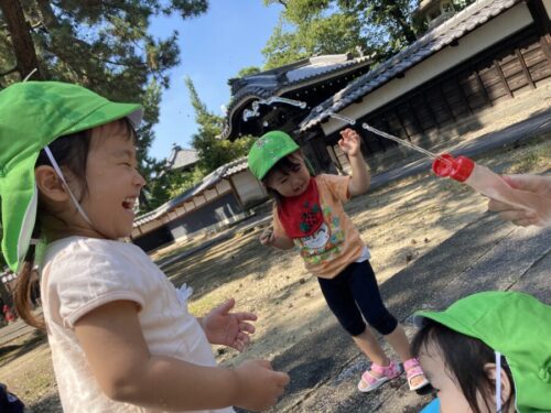 みんなびしょ濡れになりましたが、お水遊びは楽しいようで、またしようね🎵と先生と約束していました😊