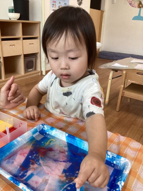 もも組さんは夏らしく氷を使ってお絵描きをしました🧊
