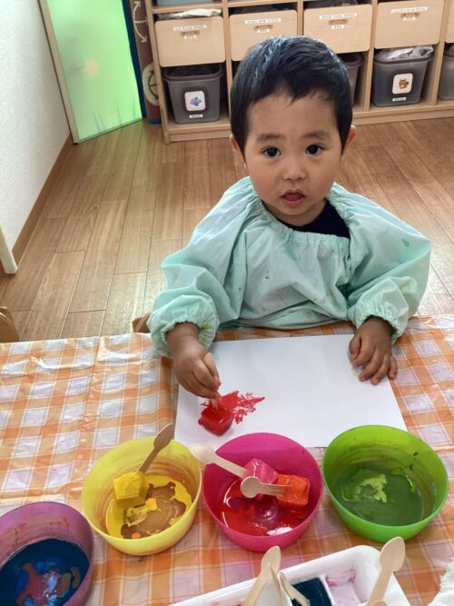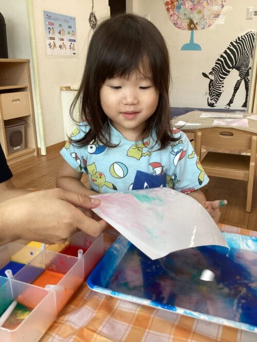 紙にきれいな色が付いて子どもたちは嬉しそうにしていましたよ🎵