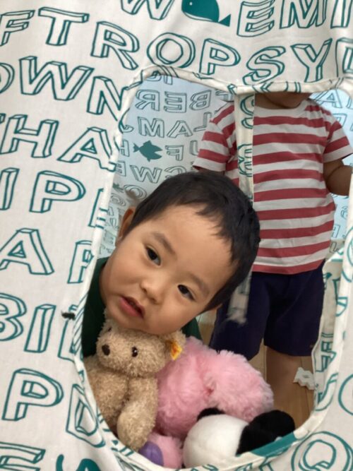 ここのポケットにブロックを入れてみたり、ぬいぐるみを入れたりしていました😂