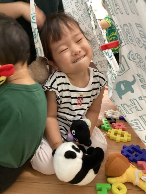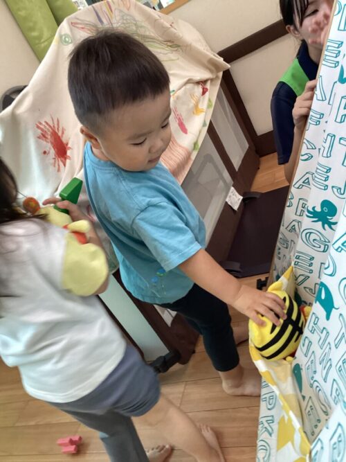 さて、そんな今日はお部屋でぬいぐるみやソフトブロックで遊びましたよ!