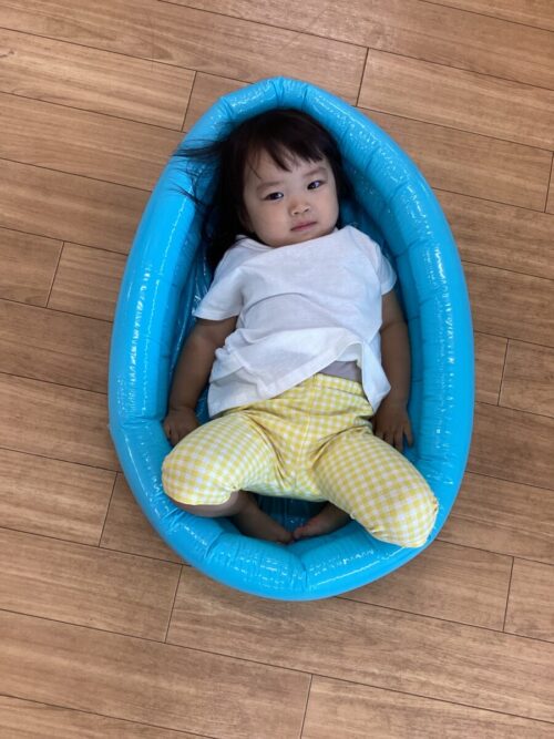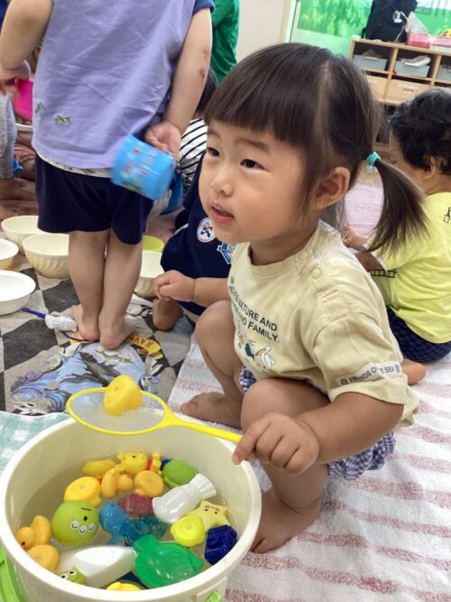 タライや洗面器、バケツ🪣たくさん水を用意して、オモチャも水に浮かべて…