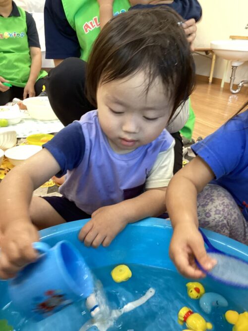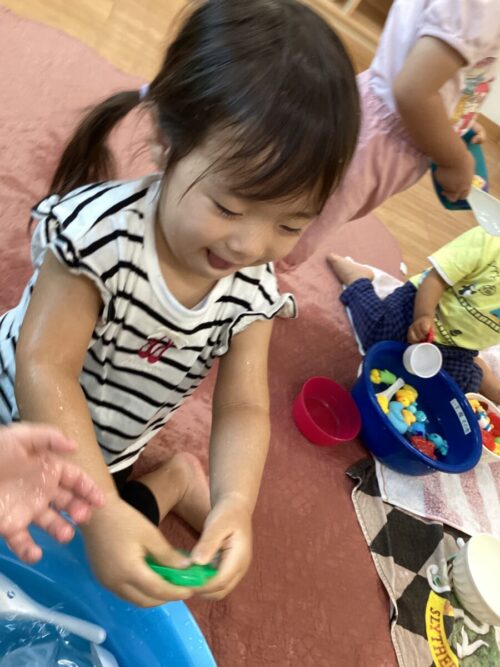 今日は室内で水遊びをしました💦