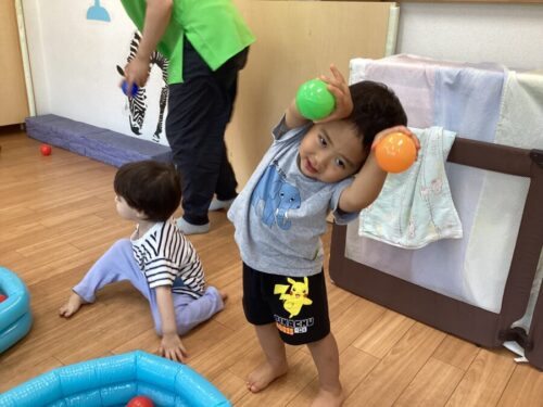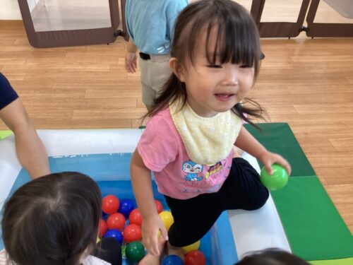 今日はお部屋の中でボールプールをしました♪