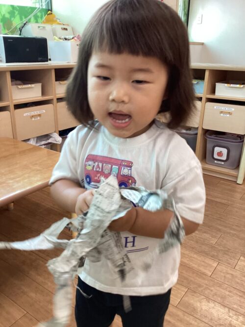 途中から新聞紙もビリビリにして入れてみたら、なんと楽しいことでしょう(笑)
