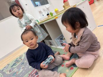 雨でも室内遊びを楽しんでいるあひる組さんでした😁