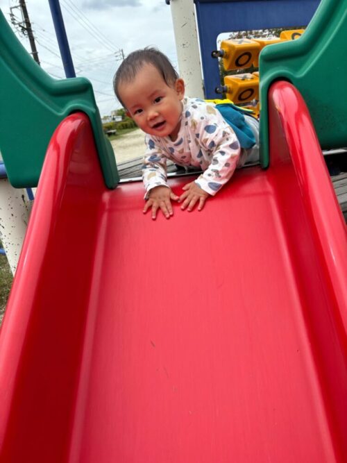 まずはみんな大好きすべり台🛝繰り返しニコニコ笑顔ですべっていました🥰