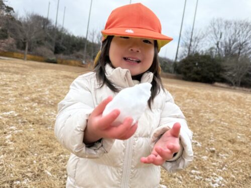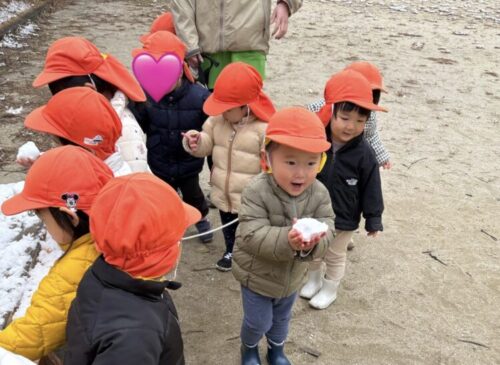 「見てボール‼️」と大きな雪玉を見せてくれたあひる組さん🦆広場中を走り回って保育者に自慢して回っていました🥰