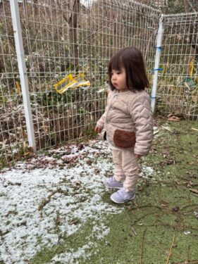 今日は朝から「雪降ってた❗️」「触って冷たかった‼️」と、雪の話で大盛り上がりのひよこ&あひる組さん🐣🦆「公園で雪見に行こう‼️」と誘うと、「行くー‼️」と元気なお返事☺️しっかりと上着を着て、公園に出発です🛫