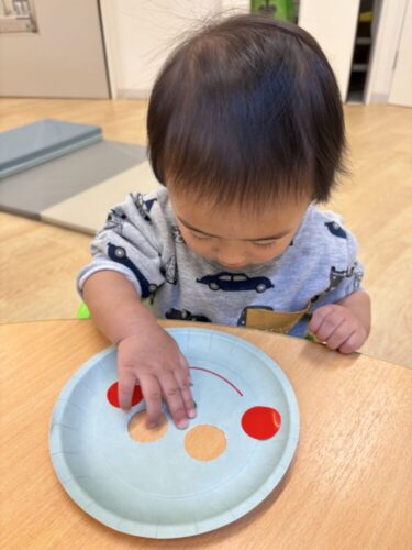 小さな氷を見つけて嬉しいあひる組さん☺️溶けて無くなってしまうまで手の中で大事に持っていました✊