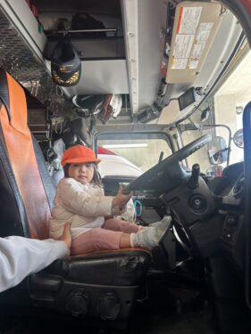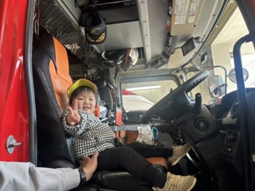 ハンドルも握らせてもらいました✨✨気分はまるで本当の消防士さん🧑🚒