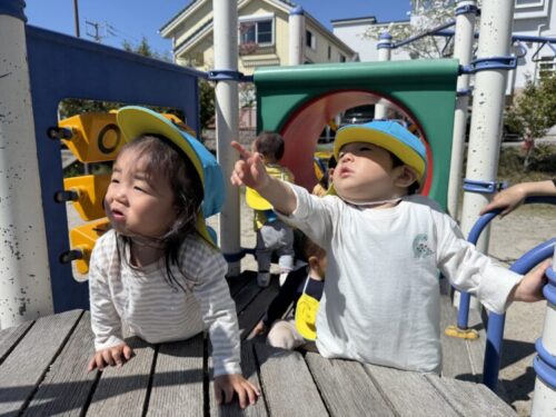 今日はお砂場遊びをして遊ぼう❗️ということで、植田山公園という公園までお散歩に行きました🏃♂️💨初めての公園でドキドキなあひる組さんです🦆