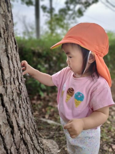 木の感触って面白いね!夢中になって触ったり、めくってみたり、観察したりしていました🌳