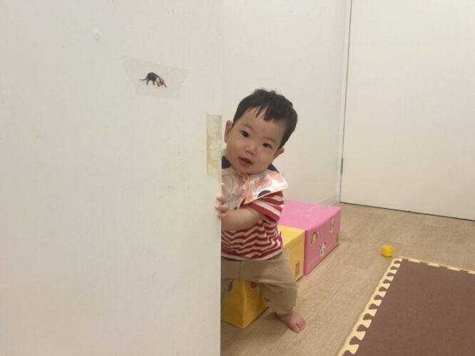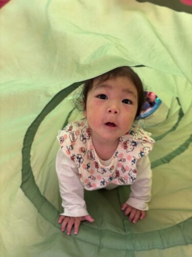 ばあ!!ハイハイでトンネルもくぐったよ🌼