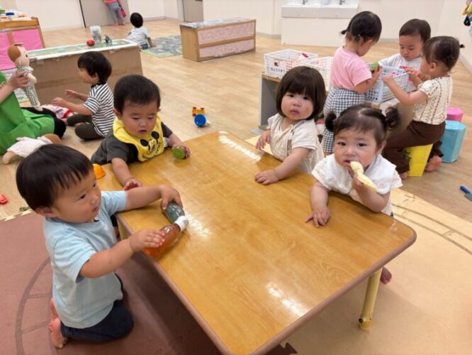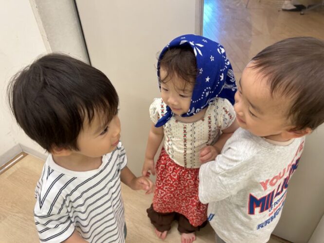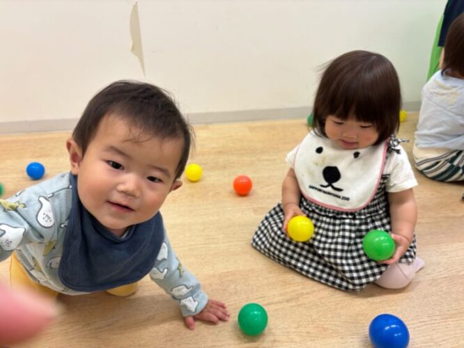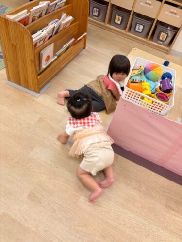 0歳のお友だちと1歳のお友だち、仲良しさんです☺️