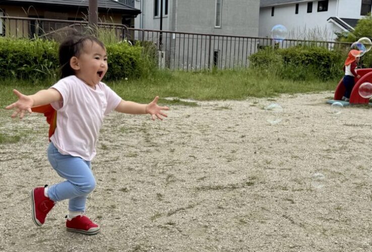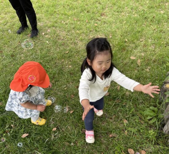 シャボン玉遊びもしたよ!「パチンッ」と言って、シャボン玉を追いかけていました🫧