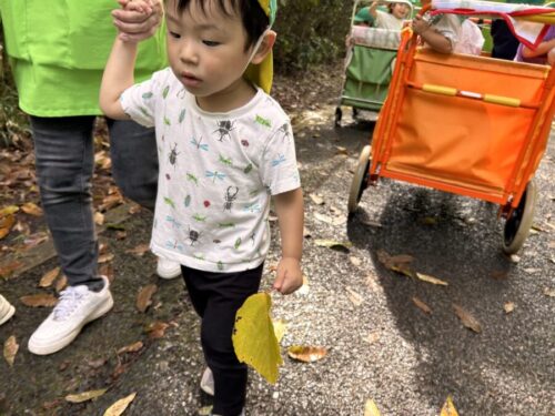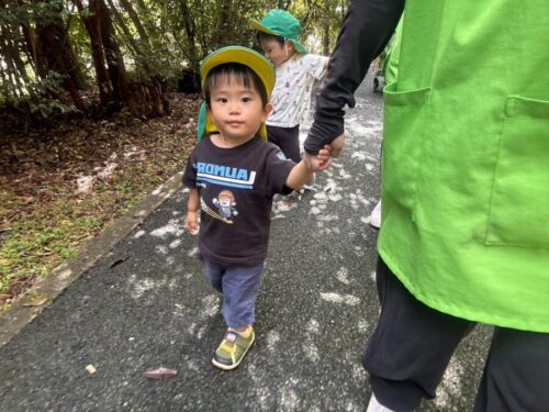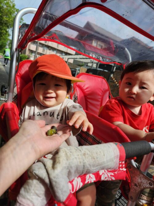 どんぐりを発見💡保育者が見せると嬉しそうに触っていましたよ![]()