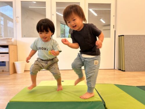 マットの上で飛び跳ねたり、走ったりするお友だち![]()