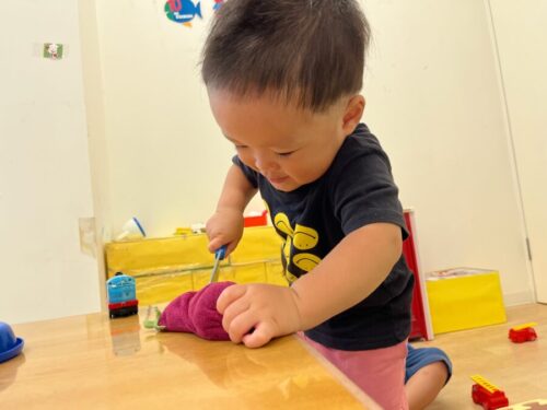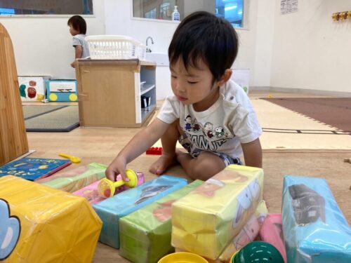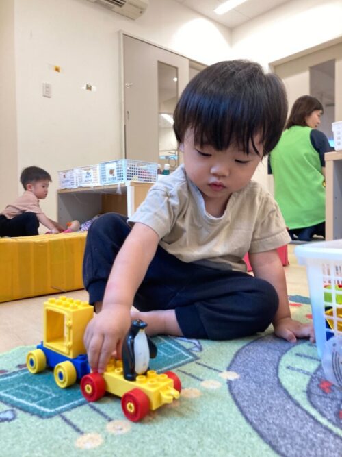 お部屋ではペンギンを乗せた車をたくさん走らせるお友だち🐧