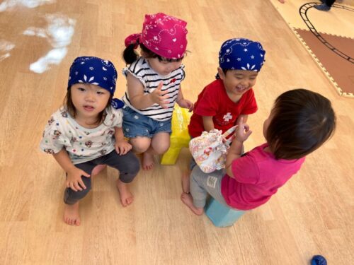 バンダナ巻いて、みんなでおままごと