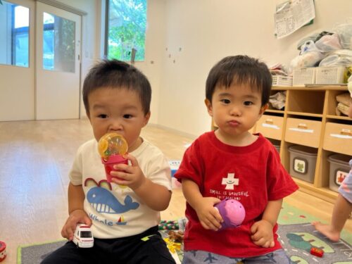 日に日にお友だちとの関わりが増えてきて、一緒に楽しそうに遊ぶ微笑ましい姿がよく見られるようになりました![]()