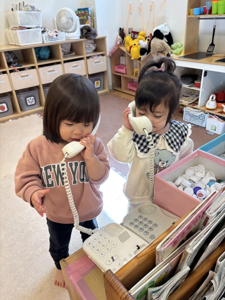 「もしもし〜」と仲良く並んで電話☎️いっぱいお話し出来たかな?