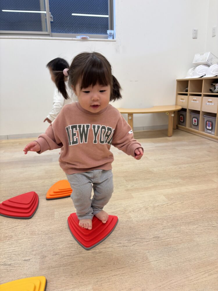ひよこさんはバランスストーンで、ぴょんぴょん🦶🦶上手に渡れるね❣️
