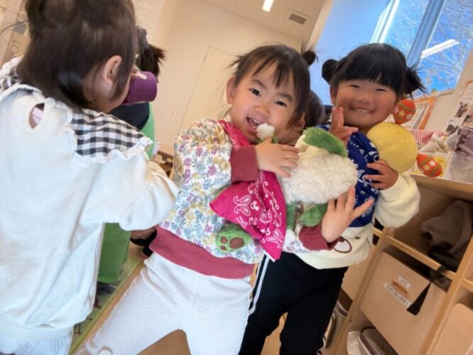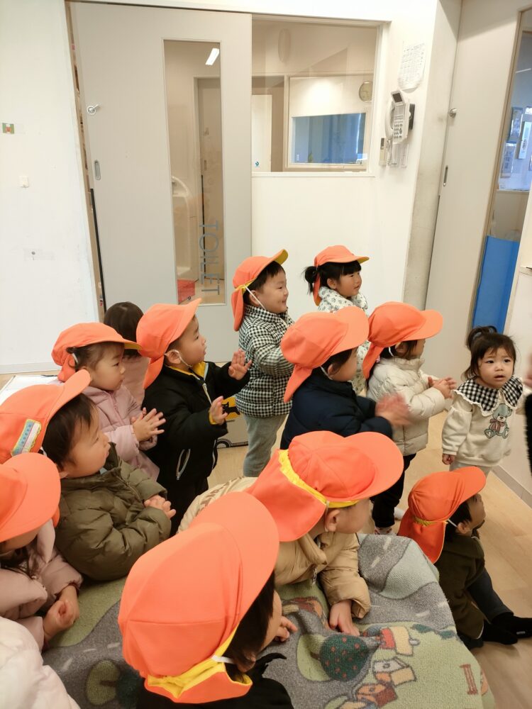 手をあわせて「ちちんぷいのぷい🪄」「ポカポカポカポカ👐」みんなの呪文で動物さん達のプレゼントは無事にペンギンさん🐧に渡せることができました😆