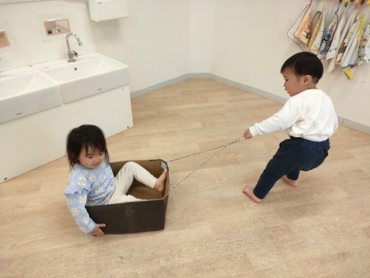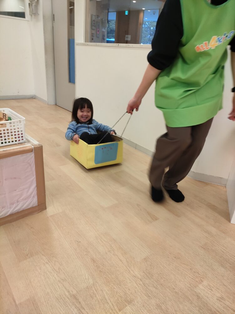 「乗って〜、出発します❣️」と、一生懸命引っ張ってくれるお友だち😊力いっぱい頑張ります💪