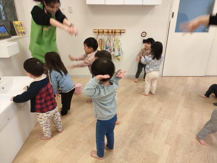今日はお外は寒いね〜❄️とお話しで,みんなで体を動かしていきます💨