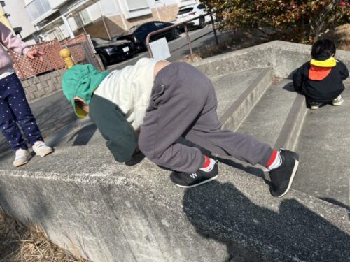 「先生見てて👀❗️」と言うと階段横の坂道を登るのを見せてくれました♪