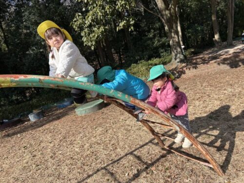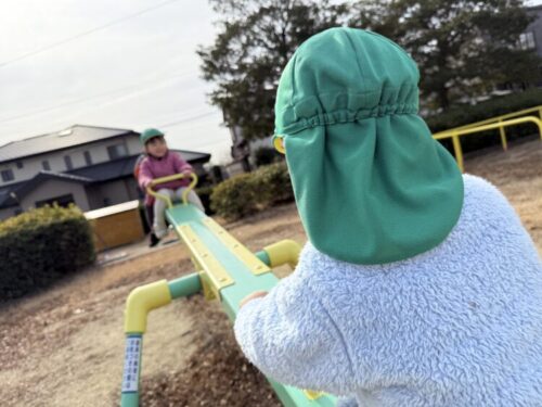 植田山公園に到着しました🛝最初に向かったのはシーソーです🙌「僕こっちすわるー❗️」「私はこっちにするー‼️」と口に出しながらるんるんでシーソーで遊んでいました😊