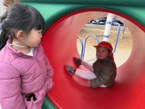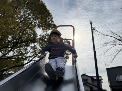 最後はすべり台で遊びました🛝「見てて‼️」と保育者を呼んで華麗にすべるうさぎ組さん🐰お友だちと一緒に繰り返し何度もすべっていました✨